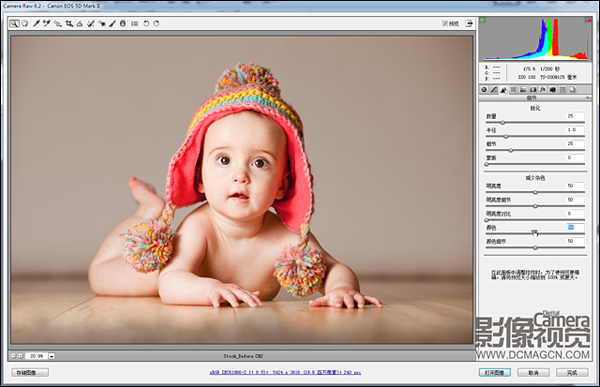 噪点是图库评审员回绝照片的主要因素之一,噪点主要出现在背景与地面接触的中间调位置。将减少杂色板块的明亮度与颜色滑块均提高至50,然后适当加强锐化部分设置值还原因降噪造成的锐度下降。