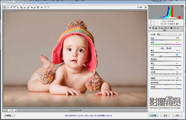 我们前面的曝光调整很有可能造成皮肤部分的高光细节损失,解决该问题最简单的方法就是回到基本面板继续提高恢复滑块的值,但在调整时切忌过量,造成高光位置发灰或偏色,目的以调整到自然为好。