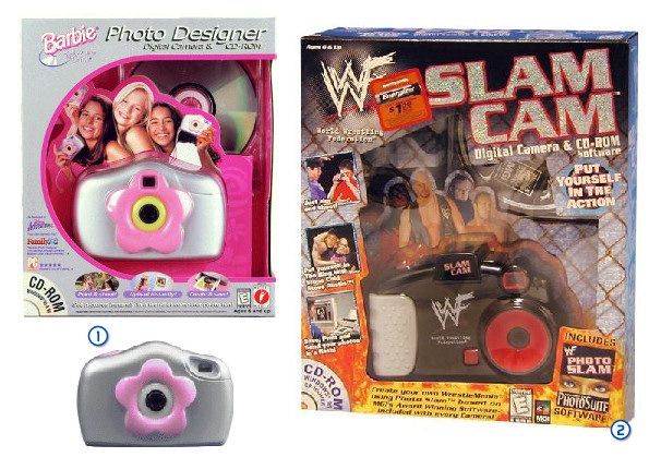 这两台相机是市场上最早的儿童玩具数码相机。它们只能拍摄6张照片,但售价不到100美元。