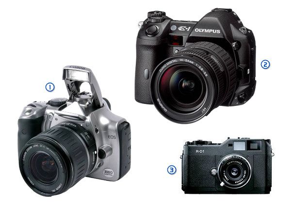 佳能EOS 300D是第一台售价在1000美元以下的数码单反相机。奥林巴斯E-1是第一台4/3单反相机。爱普生R-D1是第一台数码旁轴相机。