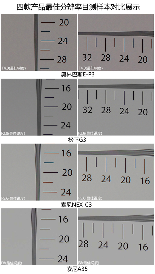 四款单电产品分辨率测试排名表