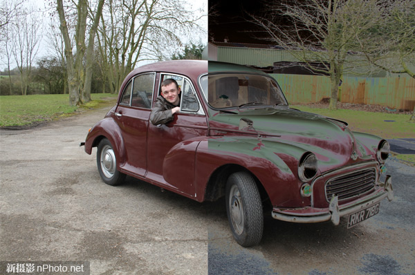 我们只能说,直接用这个滤镜做出来的效果非常糟糕。下图的右边部分就是应用滤镜后的效果,看起来一点也不真实。