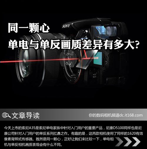 今天上市的索尼A35是索尼单电家族中针对入门用户的重要产品,尼康D5100同样也是尼康公司针对入门用户的单反系列扛鼎之作。有趣的是,这两款相机使用了同样的1620有效像素背照式传感器。既然是同一颗心,正好让我们来比较一下,单电相机与单反相机画质表现会有什么不同。