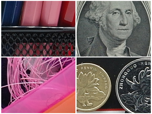 在锐度值仅作为参考的情况下,看5款相机的实际拍摄效果则更有意义。以下为5款相机在同场景下实拍样本的100%截图。
