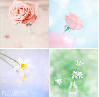 在花朵的选择上通?;嵫≡褡约合不肚页<模杂诠雇己蜕饰蚁朊扛鋈诵闹卸加胁煌谋曜?,我更偏向于趋于柔和的画面色彩,能给人以平缓的心理感受,这与我的性格有关。