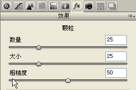 .添加“效果”中的“颗?!保笆俊?5、“大小”25、“粗糙度”50,增强天空的质感。