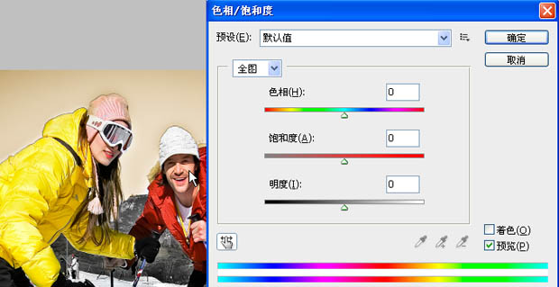 步骤8. 打开图片进入Photoshop编辑,对人物肤色进行微调,选择“色相\饱和度”右下角的手,点击要调修的肤色,通过饱和度和明度的调整来改善人物的肤色。
