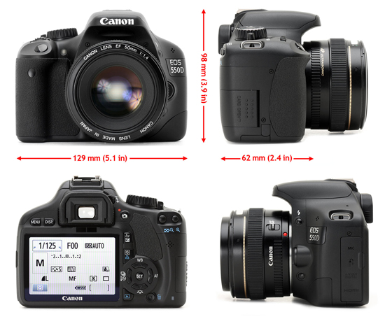 EOS 550D的主要特性有:装备了1800万像素APS-C尺寸CMOS影像传感器,沿用了450D和500D上的9点自动对焦系统,中央一点为十字检测点,双层63区测光系统,3英寸,3:2比例104万像素点LCD,DIGIC IV处理器,14bit A/D转换器,提供Liveview和高清视频拍摄功能,,采用了型号为LP-E8的电池,容量1120mAh,存储卡支持SD/SDHC和未来的SDXC。
