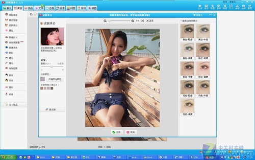 肌肤美白,不仅是电视广告里宣传的,打造漂亮的人像照片一样少不了它,用户可以通过右边边栏处的9中肤色“一键美白”,同时也可以用笔刷刷出只有人像部分明亮通透的图片来。下图就是用笔刷后的效果。