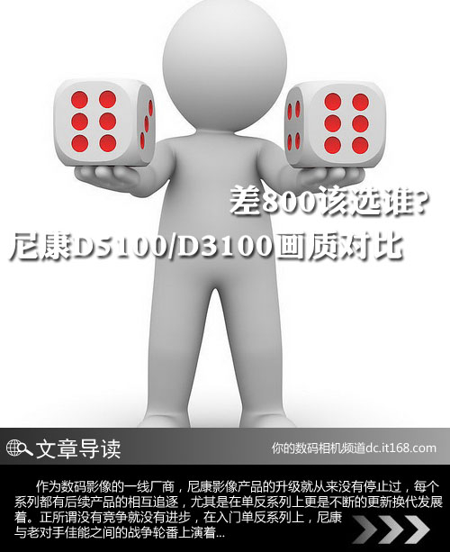 话说目前尼康入门单反的当家花旦尼康D5100和尼康D3100,市场表现都还算不错,也各有特点,同时也有各自力挺的粉丝,不过到底谁优谁劣还得用事实来说话。今天咱们就画质做个全面比较,看看到底800元的差距到底有多大吧?
