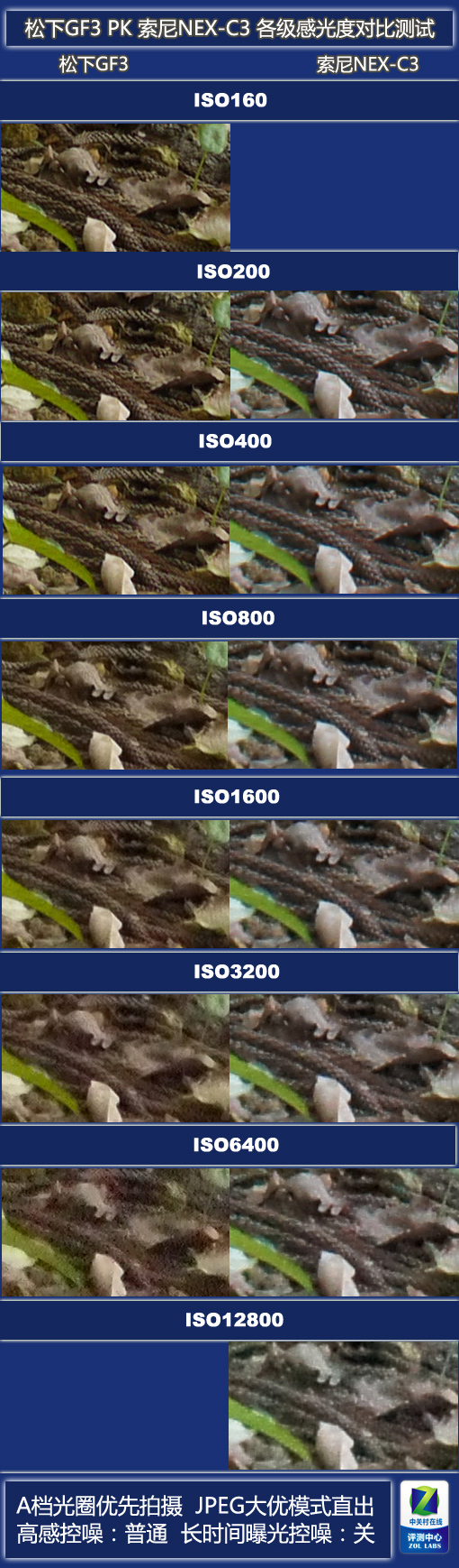 索尼NEX-C3pk 松下GF3 感光度逐级对比测试
