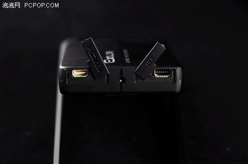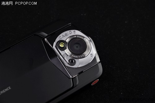 除了主打的黑色机身外,最醒目的就要数这颗有效像素为1210万的镜头了,在镜头左上方则为闪光灯。镜头采用银色透明玻璃设计,因此与黑色的机身搭配起来非常的时尚,看上去浑然一体。