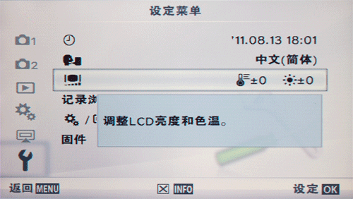 ▲E-PL3屏幕亮度、色调调整界面