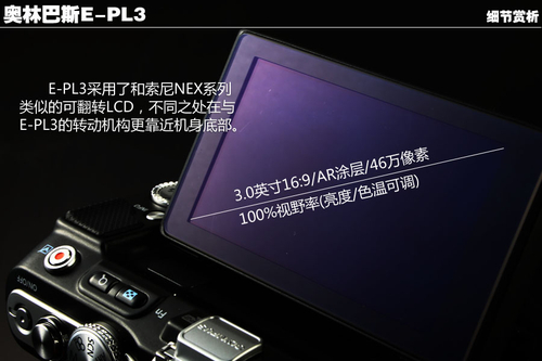 ▲E-PL3采用了16:9规格的可翻转LCD,但它不支持触控功能。(点击查看高清大图)