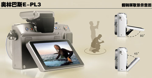▲E-PL3翻转屏取景方式示意图