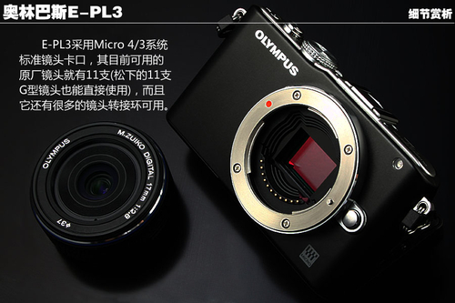 基于Micro 4/3系统规范的E-PL3在目前所有的单电相机中拥有最为广泛的镜头支持,这是任何非Micro 4/3系统单电都无法比拟、且在之后的相当长时间内也无法企及的最大优势。而除镜头之外,E-PL3还利用附件端口扩展出更多的应用形式,这一点同样是目前其他品牌单电所不具备的。