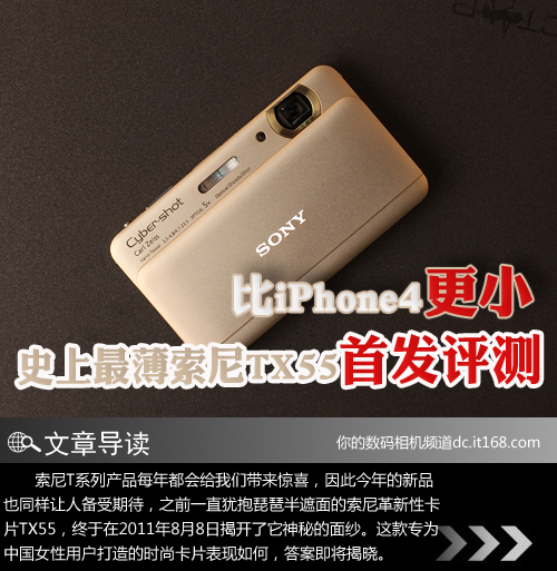 这款备受瞩目的世界最轻薄卡片TX55于今日到达IT168评测中心,我们将在第一时间为大家奉上关于索尼TX55的全面评测,看看这款进行全方位升级的产品在最终的画质表现上是否同样能给我们带来惊喜。