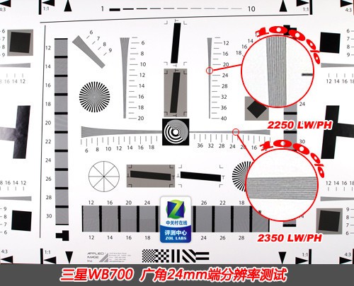 从以上测试结果看,WB700在广角端所表现出的分辨率表现还是比较不错的。2350LW/PH的广角端得分在大变焦比卡片相机中,可以算是中等偏上的水平了。长焦端2150LW/PH的得分,基本达到了长焦卡片相机的较高水平了。