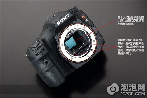 数码单反的反光板是不透明的,索尼单电的反光板是半透明的,因此单反拍照时反光板必须升起,而单电不用,所以理论上单电的连拍速度应该强于单反,事实上索尼A77已经证明单电的连拍速度胜过单反(12张/秒,A65为10张/秒)。