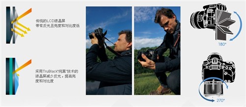 A65采用一块92万像素,3.0英寸的Xtra Fine LCD液晶屏,可实现上下180度、左右270度的翻转,这与A55是完全一样的。