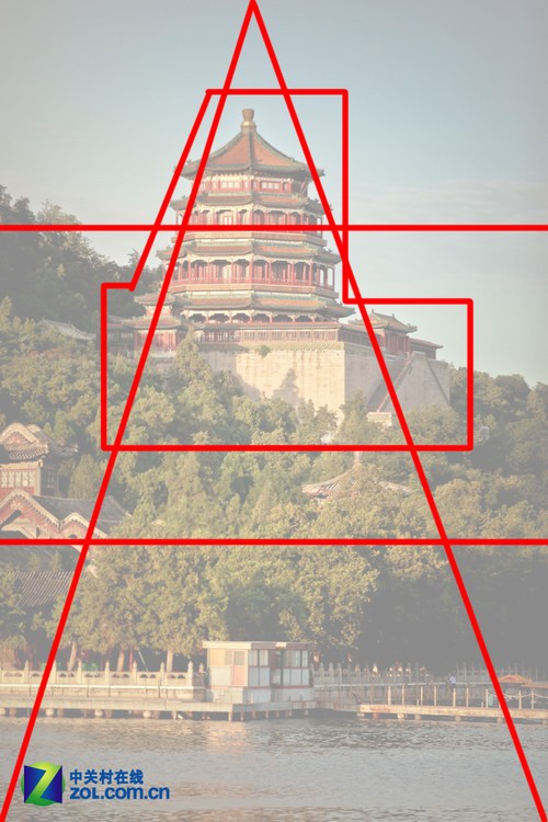 建筑摄影在我们每个人旅游途中都是不得不拍的题材,那么怎样拍才是一幅标准的作品呢?正像以下构图示意里阐释的一样,每个建筑都有几条“看不见的透视线”,而我们要做的就是找到他们。