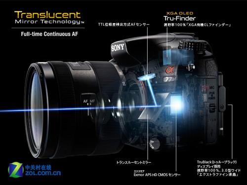 当然除了CMOS以外,A77作为4年来唯一一台索尼中端可换镜头相机 ,在很多地方亦有着非常明显的突破。镁合金机身、12fps高速连拍、19点对焦系统,以及首次在A系列中现身的“全尺寸”肩屏都不得不引起我们每个人的关注。