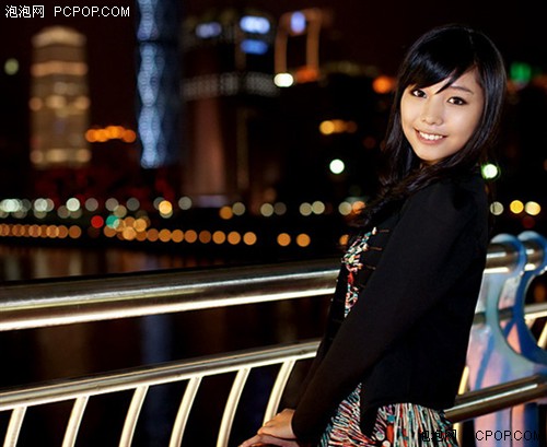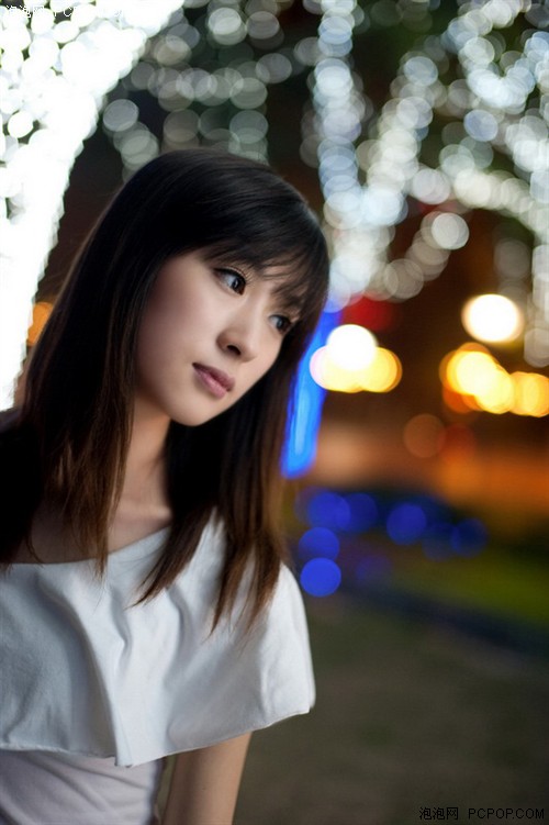 夜晚在步行街,我们可以利用商铺橱窗的灯光或路边霓虹灯的光线进行拍摄。大光圈镜头可以告别使用闪光而造成的主体曝光死白,背景昏暗的效果。我们完全可以开大光圈,适当提升ISO高光度,来拍摄出完全融入于环境光线中的人像作品。