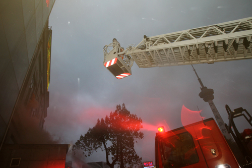 11月30日,全国旅游安全突发事件应急演练上,消防官兵现场救援。当日,全国旅游安全与保险工作会议在江苏南通召开,并举行旅游安全突发事件应急演练,此演练旨在促进旅游应急救援能力和应急处置协调联动能力的提高,保障旅游全行业安全稳定。 许丛军摄影报道