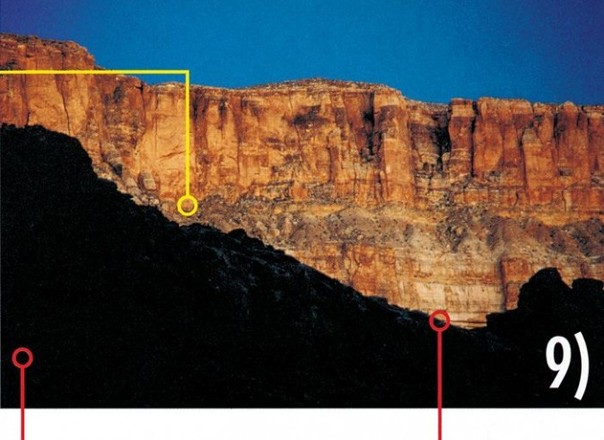 注意观察画面前景被阳光照射的物体,其背景是否有大面积的阴影,反之亦然。比如一座与山谷相邻的山峰就会出现这样的效果,山峰与山谷的峭壁可以形成鲜明的色调交错对比。你也可以在风暴来临的天气下得到同样强劲的画面,当光线穿透云层射出来的那一刻,被照亮的景物就能从阴影中凸现出来。