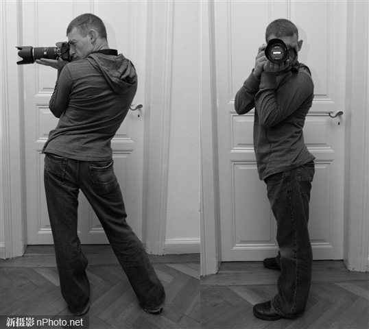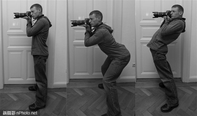 只有在无法找到有效支撑的情况下,才考虑采用站姿拍摄。以下几种姿势都可以采用,大家可以根据自己的习惯具体选择。在直立站定时,应该保持身体成一条直线,很多摄影爱好者会不自觉地身体前倾,这是需要注意的。除了直立之外,还可以像举重运动员一样将背部弯起,两腿分开站立,这也是一种很稳定姿势。注意双脚的跨度要大于肩宽。将身体向后倾,同时腰部向前突出的姿势并非所有人都喜欢,但可以选择。