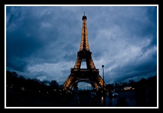 埃菲尔铁塔的日落美轮美奂。但正当我们要离开的时候,我又跑了回去,才欣赏到这样的美景,晚间暗色的云朵为灯光闪耀的铁塔落上了一个华盖。