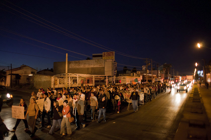 华雷斯城居民走上街头抗议,抗议联邦警员开枪射击一名学生。