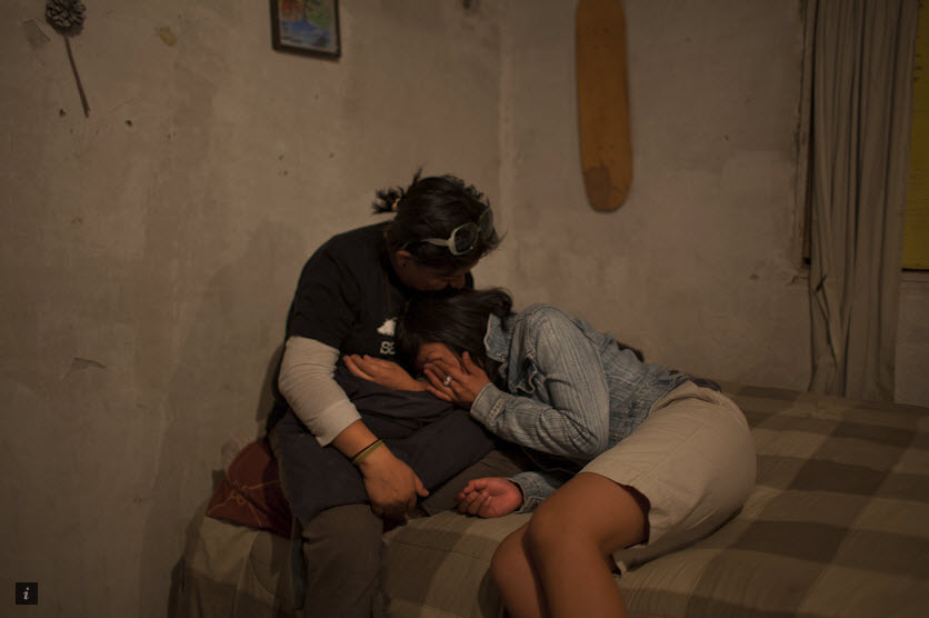 利迪娅正在安慰女儿。利迪娅和她的家人被迫离开家园。因为Novenos团伙成员常常在利迪娅家周围逗留,威胁要杀害她和她的孩子。