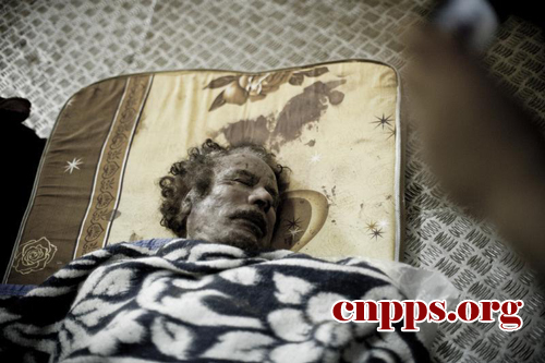 ????这是2011年10月22日在利比亚米苏拉塔一间冷库内拍摄的利比亚前领导人卡扎菲的尸体。利比亚“全国过渡委员会”执行委员会主席贾布里勒10月20日在新闻发布会上证实,卡扎菲当天在苏尔特身亡。(第22届中国新闻奖摄影作品初评入围作品)