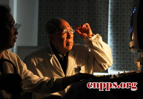 ????15时48分,吴孟超为即将手术的患者做B超,这是他坚持了几十年的习惯。一个下午,他为7个病人做了B超。