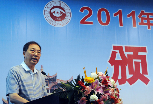 ????8月11日,2011年度中国新闻摄影比赛颁奖典礼在武汉隆重举行,金奖、年度杰出摄影记者和年度杰出图片编辑奖获得者出席颁奖典礼,并向他们颁发奖牌、证书和奖金。