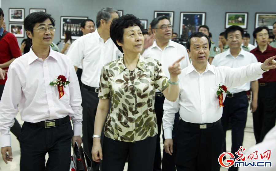 图为全国人大常委会副委员长严隽琪(中)参观书画展。光明日报记者杨慧峰摄