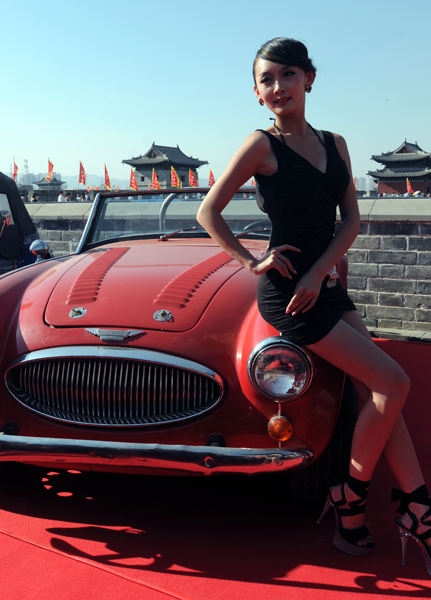 名车、名模在古城墙上一展风采。王呈选摄影报道