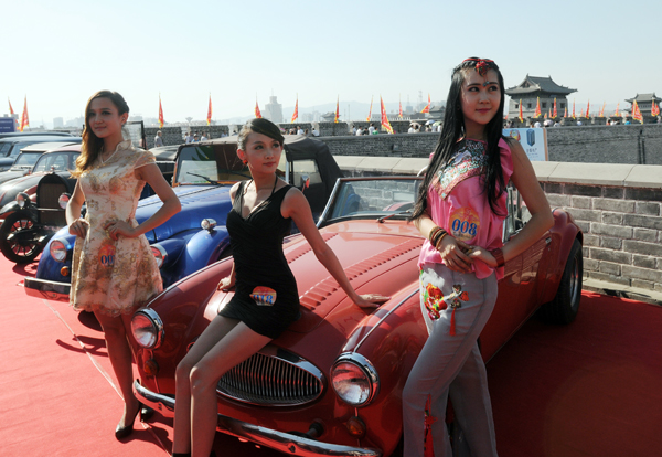 名车、名模在古城墙上一展风采。王呈选摄影报道