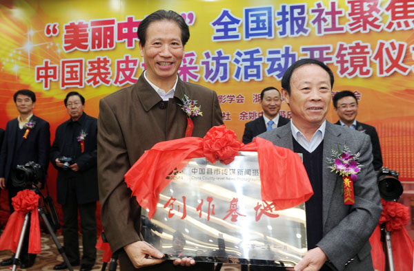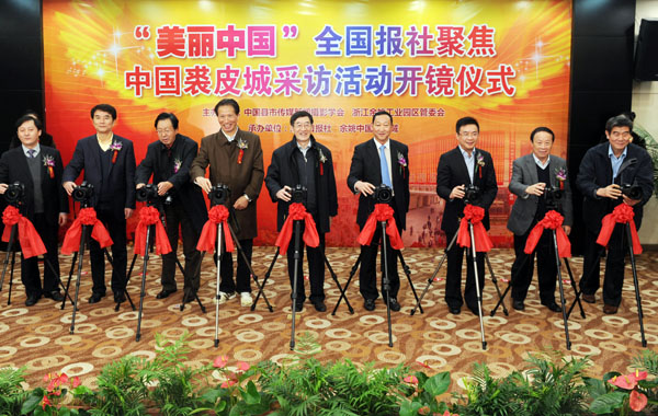 中国新闻摄影学会主席、华赛组委会主席于宁,中国新闻摄影学会执行主席兼秘书长、新华社亚太总分社党组书记、副社长徐祖根,中国新闻摄影学会副主席胡颖、郑石明等领导和嘉宾出席采访活动开镜仪式。余姚市政协副主席、余姚工业园区管委会主任徐栋芳宣布开镜。来自全国40多家县市传媒的近百名社长、总编辑、摄影部主任和知名记者走进中国裘皮城,用镜头摄下一组组精彩画面。