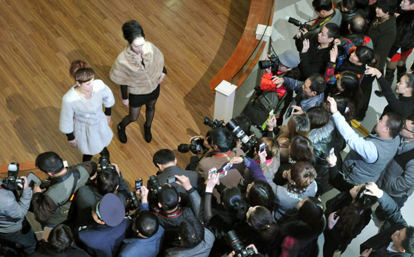 中国裘皮城业余模特队正在展示最新裘皮服饰。