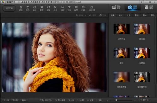 打开新版光影魔术手,第一感受应该是它全新的界面风格了。新版光影界面采用黑色为主色调,同时加入蓝色点缀,大气专业的同时彰显典雅气质,在处理美照的时候有更享受的视觉体验。