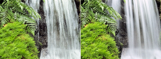 ▲左图是用1/20秒拍摄,而右图是用1/2秒,可见快、慢快门速度可对某些题材产生不同的视觉效果。