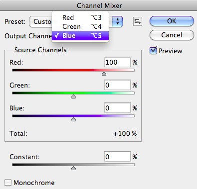 2. 后期的Photoshop 制作,可用“通道混合”把红和蓝色通道调转。