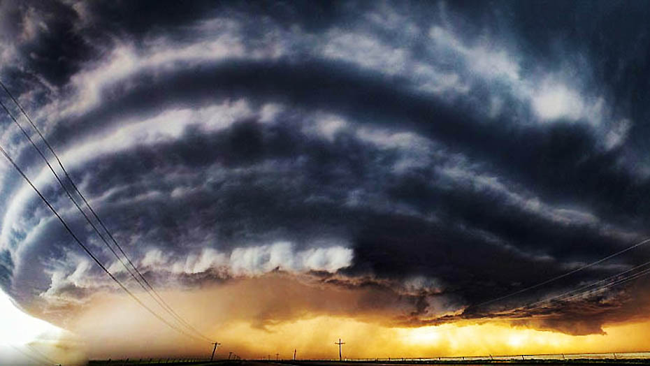 英国《每日邮电》9月11日在报道中描述了这样一幕:在辽阔的草原和寂静的公路上方,巨大的乌云层正在空中集结形成,仿佛一架太空飞船盘旋在大地的上方。世间的一切都在静候毁灭的序幕。这一幕就是超级雷雨胞形成时的景象?!睹咳沼实纭房堑囊蛔橥计?,清晰地展现了超级雷雨胞在美国“龙卷风走廊”(Tornado Alley)形成时的骇人景象。图片来源:环球网