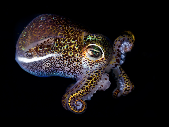 水下摄影师Todd Bretl有着常人所不及的非凡勇气,他潜入海底,将相机凑到那些海底的庞然大物或是古怪生物的面前,大摇大摆地给它们拍下特写。看他的照片,你会忘记了摄影师的存在,这些水下的生物似乎直接在跟你进行眼神的交流。一条呲牙咧嘴的鲨鱼,看起来是如此有喜感,八爪鱼的身体看起来有着油画般的色泽……近距离,带来的是一连串的不可思议。