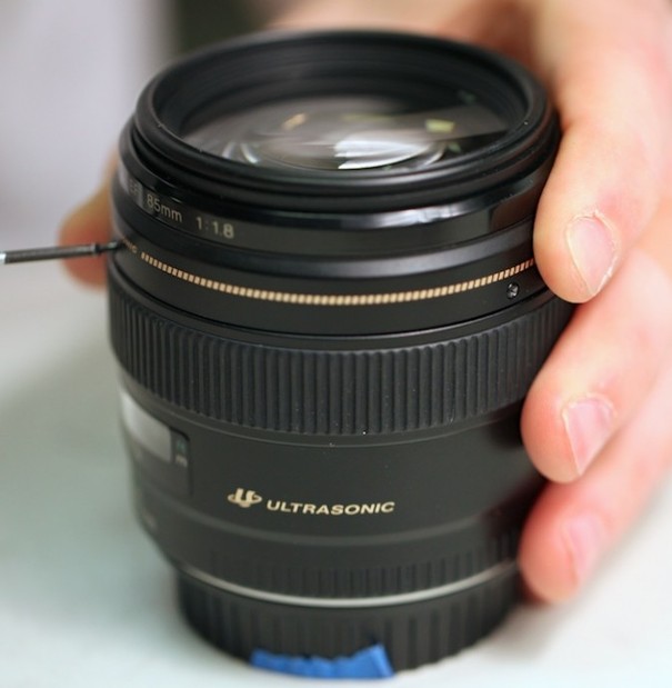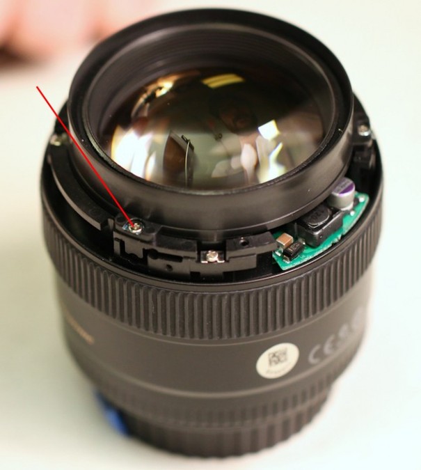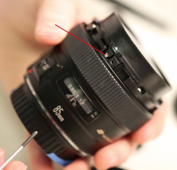 对焦环前面有三颗螺丝,三颗螺丝的作用是固定镜头正面外壳。