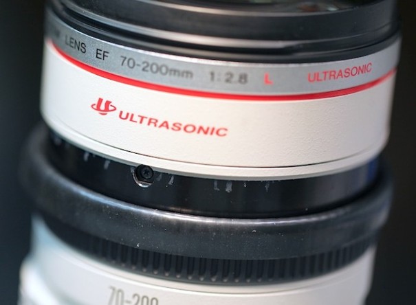 要拆除前镜组,必须先移除镜头前端的滤镜环。反折对焦环橡胶,露出隐藏在下面的固定螺丝。