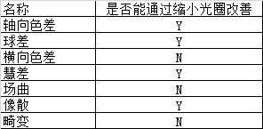 以上就是初级色差和球差,它们中有的受通光孔径(光圈)影响,有的没有关系,详细见下表,也是本题的答案了。