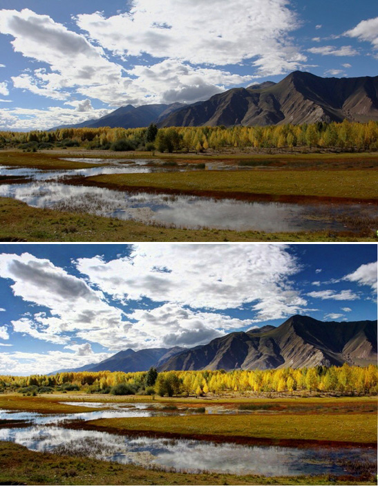 2:早晨和黄昏时  这个时候天空的色彩明显,你可以通过后期比较容易的加强和减弱色彩甚至转换色彩。因为白平衡的设置或者曝光的问题,导致许多绚丽的色彩没能展现出来,这时候后期就发挥了巨大的作用。